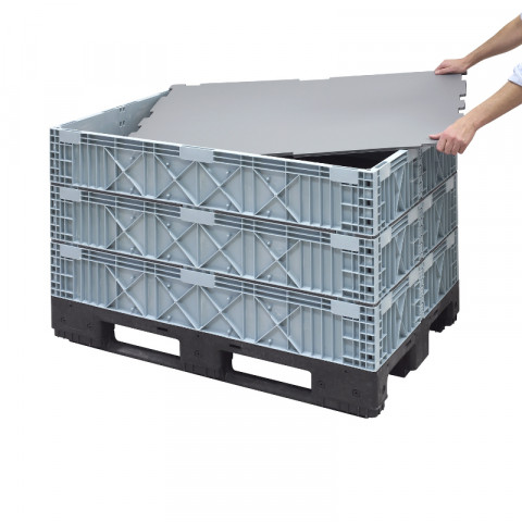 Box Mec BM1208: an intelligent foldable pallet system. Euro pallet size, modular and compatible with Box Mec BM0806.