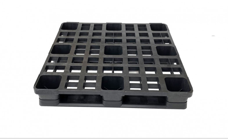 ST1100 pallets are stackable, have 9 feet, and are 4-way entry, ensuring compatibility with any forklift.